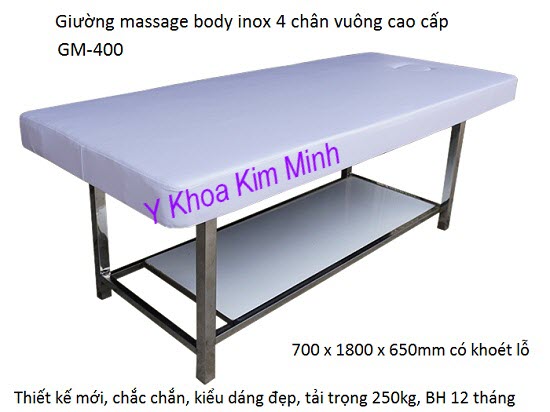 Giường massage body inox 4 chân vuông GM400
