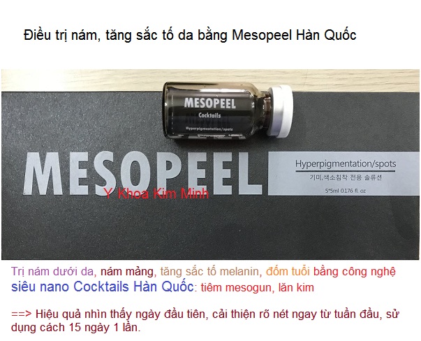 Điều trị nám bằng siêu nano Cocktails Hàn Quốc – Mesopeel theo công nghệ mesogun hoặc lăn kim điều trị nám da theo một công thức đặc biệt giúp giảm nám nhanh trong 1 tuần.