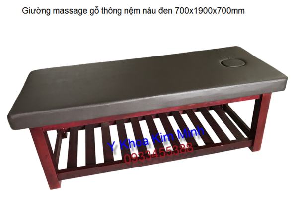 Giường massage spa gỗ thông nệm nâu đen 700x1900x700mm
